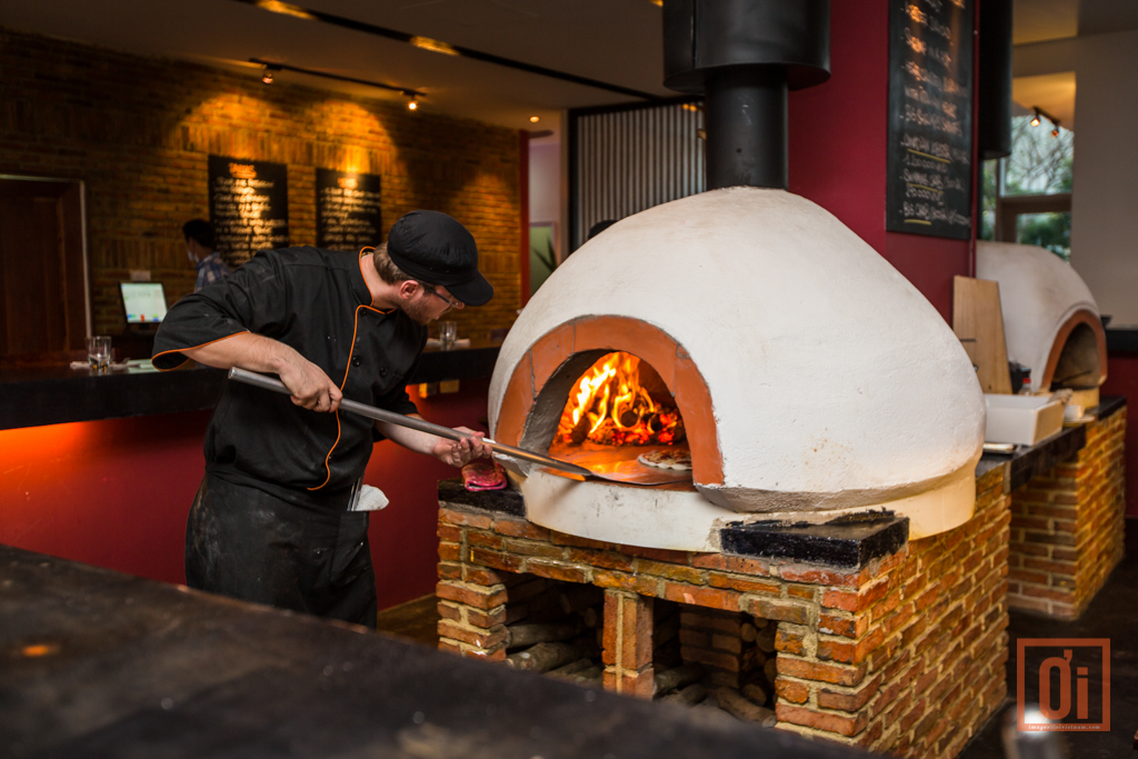 This night we chose inside where we could have the best of both worlds - the view over the lake on one side and the appetite-nurturing sight of takeaway pizzas being prepared in the moon shaped brick wood fired ovens in the center of the dining room.