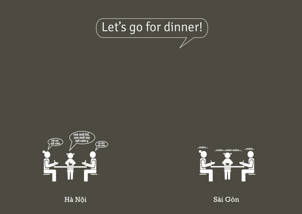 “In Hanoi, the custom is to wish someone a good meal before eating. In Saigon, you just dig in.”