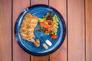 While the creamy lobster bisque (VND210,000) leaned towards the traditional, the cognac foam was a pleasant departure from the regular sherry, as was the side of clam toast with a dollop of ruddy, saffrony rouille. And the starter simply labeled “Salmon” on the menu (VND200,000) belied the complexity of flavors encompassed in a meaty steak of salmon mi cuit, half-cooked by a salt, sugar and honey rub and topped with Chantilly cream with an almost imperceptible tinge of wasabi, and an earthy green vegetable puree pitted against the tartness of a tangerine zest and the playful sweetness of orange caviar.