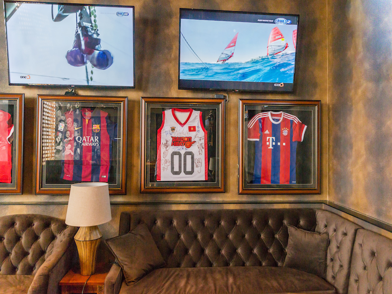 Upmarket venue aside, to make the cut, any self-respecting sports bar needs to have live sports and lots of it, accompanied by great, reasonably priced food and great beer, also in copious amounts. The Fan Club delivers on all those counts. Whatever your passion, expect to see almost every televised sport known to television available, live- streamed on massive screens lining the walls. “When we set up, we called in FPT and got four fiber optic lines direct to The Fan Club,” says Barry. “When most people break down for bad weather, we’re fine. Every TV shows internet television and we can stream every single sport here. We’ve bought links to the NFL, AFL, you name it. The three big screens are connected to their own PCs and an enclosed outdoor garden area will also soon have its own projection TV.”