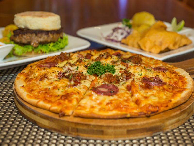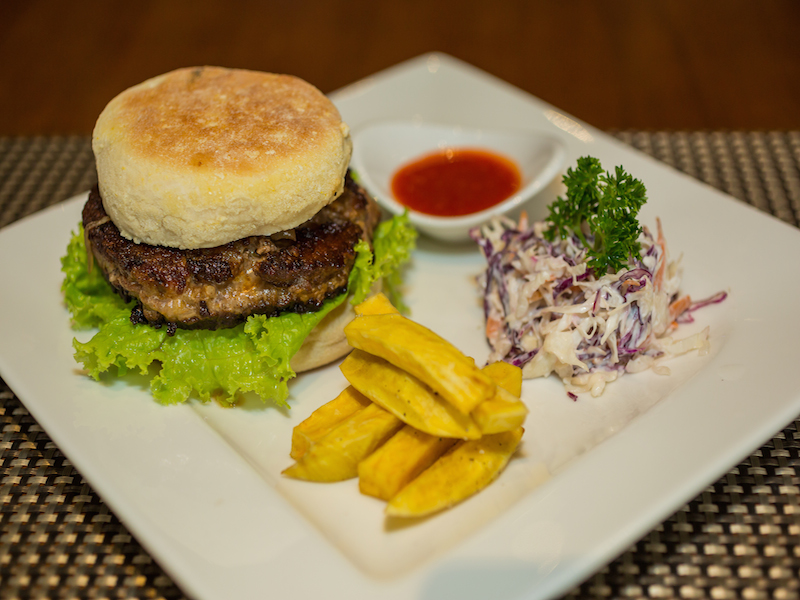 They’re so good you’ll find yourself guarding them closer than Manuel Neuer and tempted to order a couple more plates to make a proper meal out of them. Generously- portioned mains supply energy for late night celebrating. The signature Fan Club Inside Out Burger (VND170,000) sports bacon and cheese inside the patty, sealing in the juices, topped with honey caramelized onions on a toasted English muffin (baked in-house) with a side of thick cut sweet potato fries.