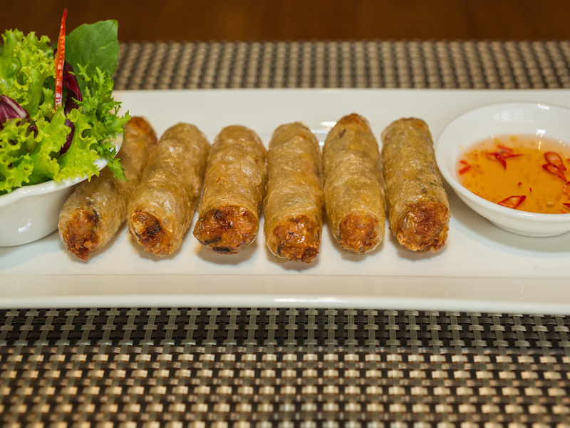The newly expanded menu covers all the Asian and Western favorites with finger foods like the homemade seafood cha gio, surprisingly hearty and stuffed with prawn, squid and crab meat (VND110,000) and the Sriracha Hot Wings (VND140,000), an absolute standout, lightly crispy with a spicy house Sriracha sauce that begs to be washed down with a refreshing Irish cider.