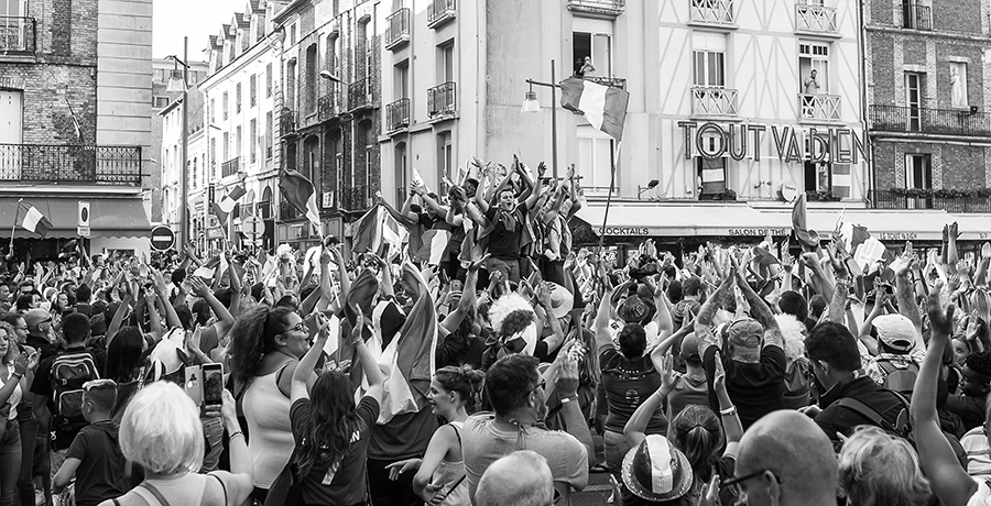 This picture was taken in Dieppe, moments after the football World Cup final of France vs Croatia. It was madness! The crowd invaded the streets all evening and all night. It was a big party that united all the French people. There was no difference to be seen between anyone, it was beautiful to see. Everyone wanted to be photographed. It was amazing.